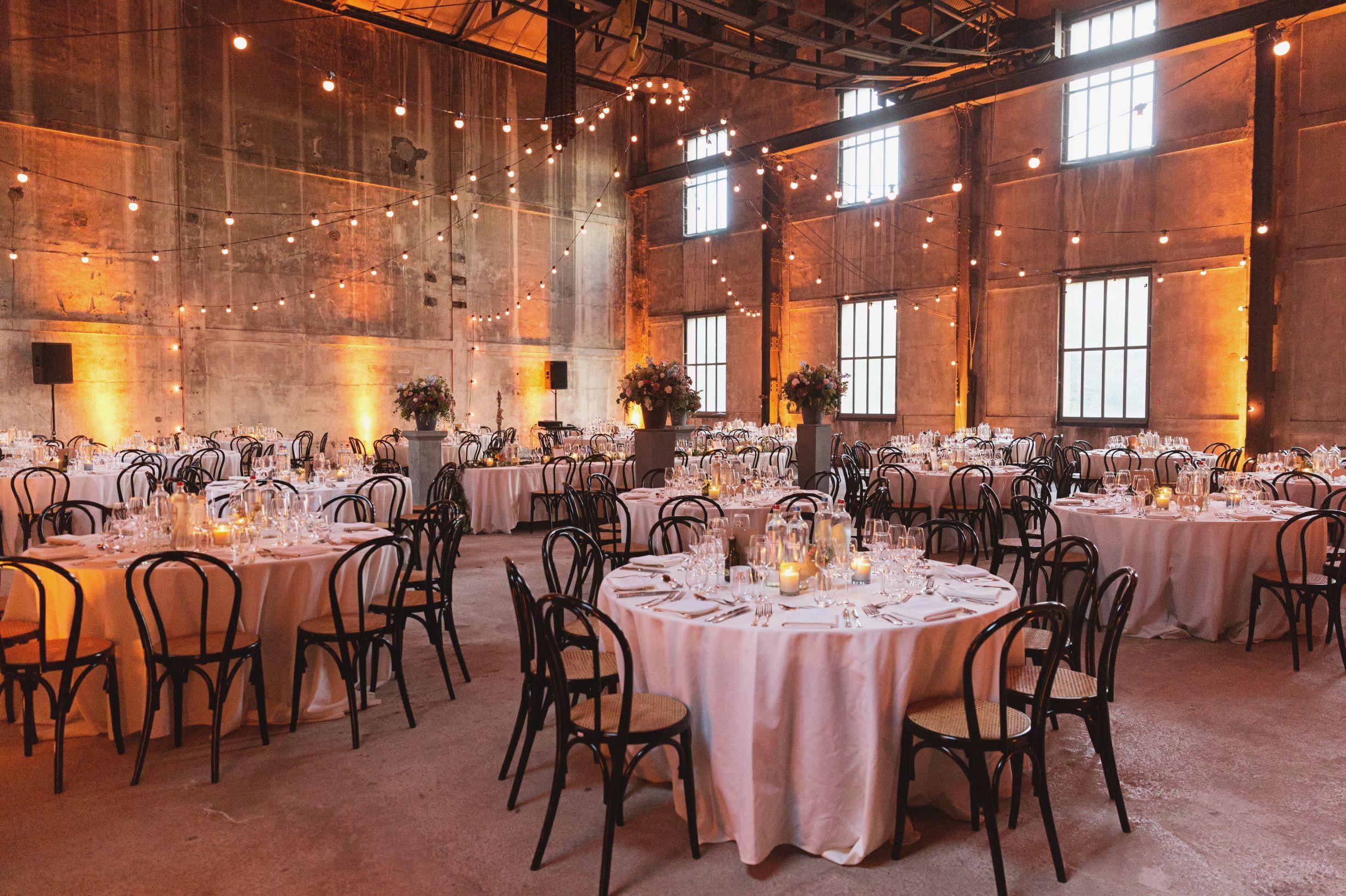 Een 2-daag trouwfeest in de Erfgoed-site Transfo. Met bomen, groen, bloemen en speelse elementen komt het ruwe staal van de machines weer volledig tot leven. Magisch!